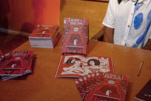 Novo livro de Brenalta “Versos que as bocas comem” e Mariane Lima, no evento de lançamento Imagens: Bianca Almeida.